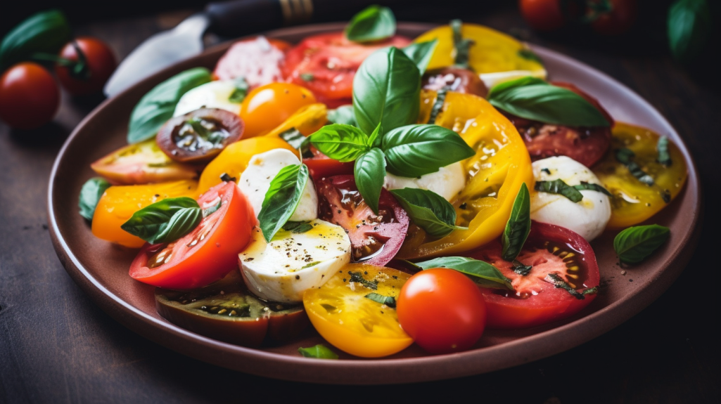1. O que é uma salada Caprese com Tomates Heirloom e Manjericão?